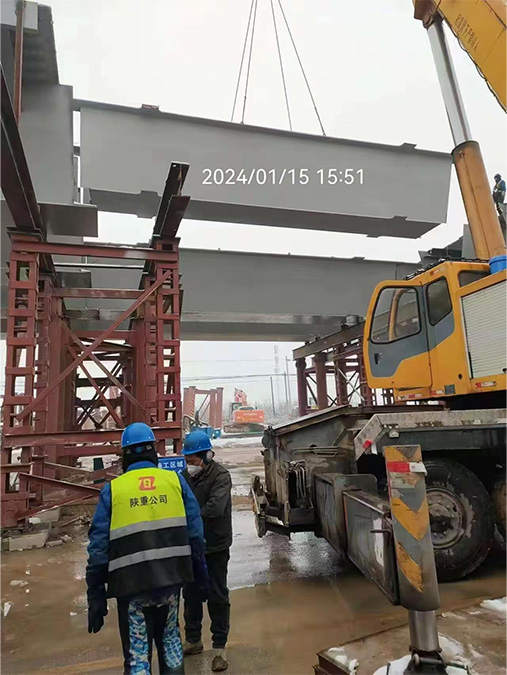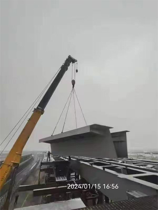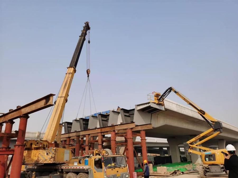 陜西重型機械制造有限公司承擔(dān)的航站樓出場道路高架橋項目中的400多塊鋼箱梁,其中50%以上的鋼箱梁為新式疊合梁,該疊合梁的結(jié)構(gòu)復(fù)雜程度和單件重量以及多變的外形,為陜重公司的首次加工和安裝,技術(shù)難度大。該項目的參建,對陜重公司鋼結(jié)構(gòu)橋梁的制作和安裝具有劃時代意義。
